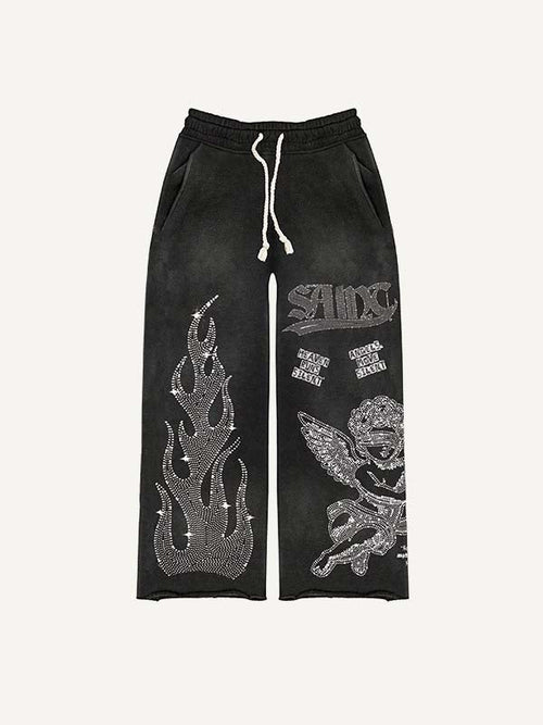Colorblock Half Angel Half Devil Figure&Wing&Skeleton&Fire&Snow&Sword&Cross&Letter Faux Decal Print Elastic Waist Pants -