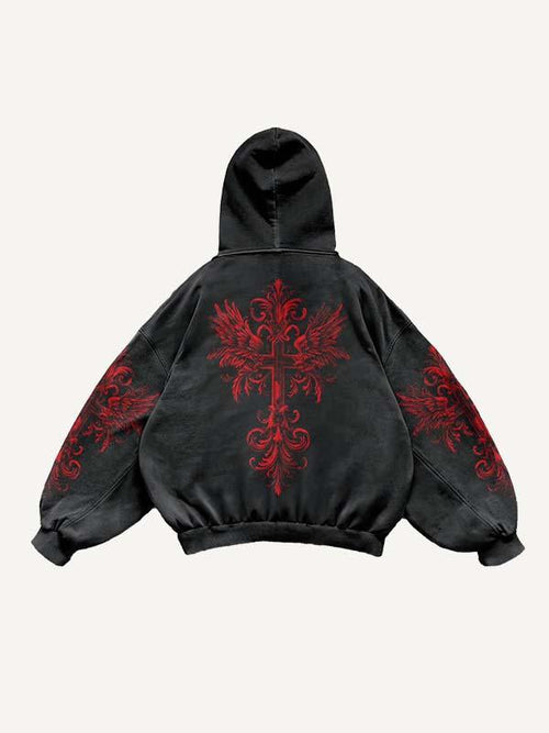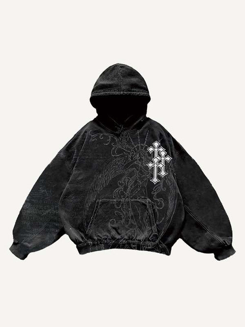 Colorblock Half Angel Half Devil Figure&Wing&Skeleton&Fire&Snow&Sword&Cross&Letter Faux Decal Print Hoodie -